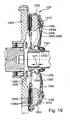 - the annular component 10 On both sides of the region 18 or of the separating slot 19, the annular component 10 has free-running-like devices 20, 21, which, as will be described in more detail below, a rotation of the annular member 10 relative to another component, which is formed here by the housing 4, cause. Due to such relative rotation, the ring-like component is also compared to other components of the clutch assembly 1, in particular the pressure plate 5, rotated.