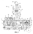 - an exhaust system is provided which includes one or more flow lines, typically pipes, and an exhaust stack located at an appropriate location on the vehicle body such that the exhaust gas flows from the engine through the pipes and out of the exhaust stack.