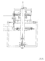 - the clamping chucks 7 and the clamping plate 8 of the clamping device 7, 8 are positioned on a rotatable shaft 9 whose peripheral velocity is synchronised with the speed of conveyance of the overhead conveyor.
