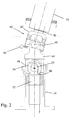 - It would be possible to locate the spring and damper closer to the sections of the steering column by shifting the pivot axis of the two sections away from their central line. Such an arrangement however would have the pivot axis of the two steering column sections offset from the pivot axis of the steering shafts inside the steering column, requiring additional measures to take up the relative movement of the pivot axis of the steering shafts. An embodiment of this kind, conform the preamble of claim 1, is shown in