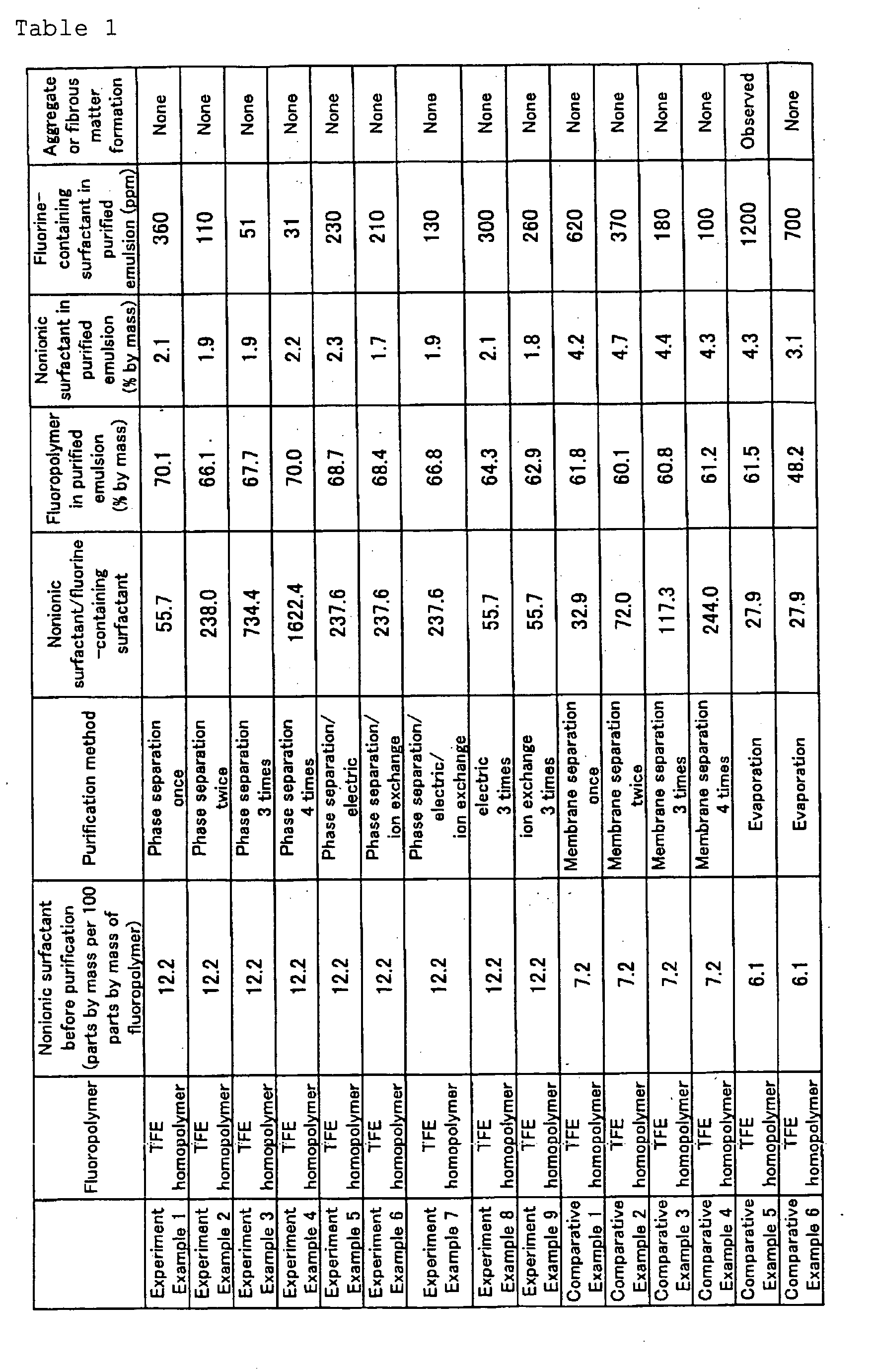 - the method of quantitating the fluorine-containing surfactant as described in this document is not very highly accurate, the fluorine-containing surfactant was not really removed to a satisfactory extent.