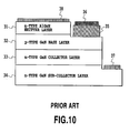 - FIG. 10 is a schematic view showing a conventional HBT structure that has a p-type GaN regrown on the p-type GaN base layer that suffers the etching damage, that is, a schematic view showing a conventional HBT structure that has a new p-type semiconductor grown on the p-type nitride semiconductor base layer.
