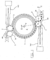- stoppage arc is defined by the number of moulds which have to remain inactive, and said number is equal to x for a certain rotational speed, then for a rotational speed which is halved said number becomes equal to 2 2 x.