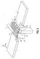 - a lead frame assembly 2 of which only a part is shown in the Figures, comprises several rows (four rows, as seen in the X direction, in the example shown) of lead frames (not shown in detail) carrying semiconductor products 3 which are mounted in a regular arrangement. As seen in each row of semiconductor products 3, the (centre-to-centre) distance between adjacent semiconductor products 3 is indicated with "pitch".