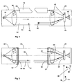 - the Justageblende 54 still two slot openings 86 and 88, passes through the light of the light beam 34, to form two auxiliary Justagelichtstrahlen. These are used for the coarse alignment as well as described above with respect to the adjustment beam 58.