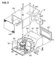 - a cylindrical second vibration isolation member 268 is disposed above the triangular prism-shaped first vibration isolation member 266 with the ceiling plate 262 interposed therebetween, and a mounting bracket 20a of the compressor is attached to the base plate of the casing via a bolt 269a and a nut 269b passing therethrough.