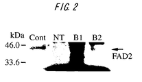 - Fig. 2 presents a photograph of Western blotting analysis indicating the expression of spinach-derived FAD2 in the brown adipose tissue of a transgenic mouse.