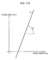 - the program according to the present invention causes a computer to execute: a data continuity detecting step for detecting continuity of data in image data made up of a plurality of pixels acquired by light signals of the real world being cast upon a plurality of detecting elements each having spatio-temporal integration effects, of which a part of continuity of the light signals of the real world have been lost; and an actual world estimating step wherein each pixel within the image data is weighted corresponding to a position in at least one dimensional direction of the time-space directions of the image data, based on the continuity of the data detected in the data continuity detecting step, and the image data is approximated assuming that the pixel values of the pixels are pixel values acquired by the integration effects in at least one dimensional direction, thereby generating a second function which approximates a first function representing light signals of the real world.