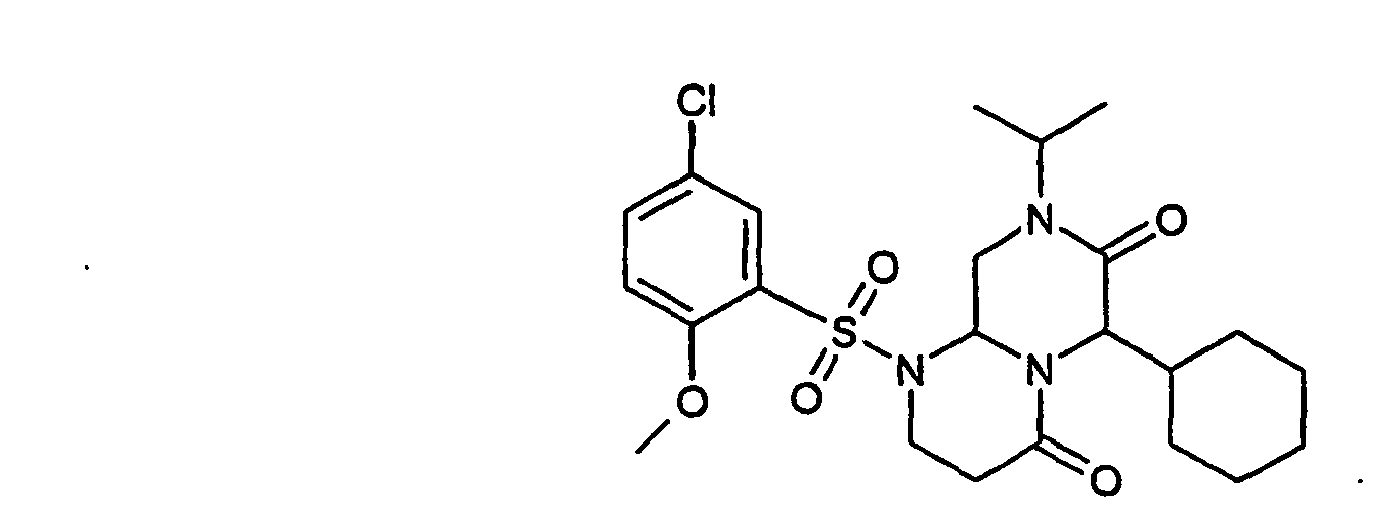 - QMGZWWBYABBWJN-UHFFFAOYSA-N CC(C)N(CC(N(CC1)S(c(cc(cc2)Cl)c2OC)(=O)=O)N(C2CCc(cc3)ccc3O)C1=O)C2=O Chemical compound CC(C)N(CC(N(CC1)S(c(cc(cc2)Cl)c2OC)(=O)=O)N(C2CCc(cc3)ccc3O)C1=O)C2=O QMGZWWBYABBWJN-UHFFFAOYSA-N 0.000 description 1