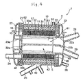 - the hollow yarn films 3a forming the hollow yarn film bundle 3 are sequentially wound around the tubular core 5, as shown in Fig. 1, whereby the hollow yarn film layers spread on the outer peripheral surface of the tubular core 5 are stacked in a multi-layer form, i.e., stacked in a spiral form or taken up into a reel form with the tubular core 5 as a core.