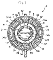 - the hollow yarn film bundle 3, the tubular core 5 having the grooves 51, the first blood chamber 11, a tubular heat exchanger 31, tubular heat exchanger deformation restraining portions 34, 35, and a tubular heating medium forming member 32 are arranged or formed concentrically in this order from the outside.