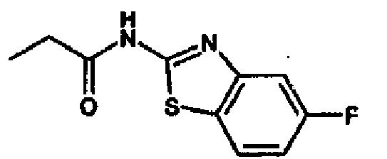 - RCJKLZVMQBZTMP-UHFFFAOYSA-N CCC(Nc1nc2cc(F)ccc2[s]1)=O Chemical compound CCC(Nc1nc2cc(F)ccc2[s]1)=O RCJKLZVMQBZTMP-UHFFFAOYSA-N 0.000 description 1