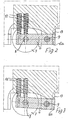 - two compression springs 12 are provided in the exemplary embodiment, which are located on the side of the pivot bearing 9 of the lever 6, on which the roller 7 is arranged. It can be seen in Fig. 2 and 3, that even one of the compression springs 12 engages directly above the axis of rotation 8 for the roller 7 on the lever 6, while the second compression spring 12 of the pivot bearing or pivot axis 9 of the lever 6 even a greater distance than the first-mentioned compression spring 12 and thus as the pivot axis 8 has.