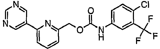 - JIMPJAOYAUUJRV-UHFFFAOYSA-N [3-(6-methylpyridin-3-yl)phenyl]methyl n-[4-chloro-3-(trifluoromethyl)phenyl]carbamate Chemical compound C1=NC(C)=CC=C1C1=CC=CC(COC(=O)NC=2C=C(C(Cl)=CC=2)C(F)(F)F)=C1 JIMPJAOYAUUJRV-UHFFFAOYSA-N 0.000 claims description 4