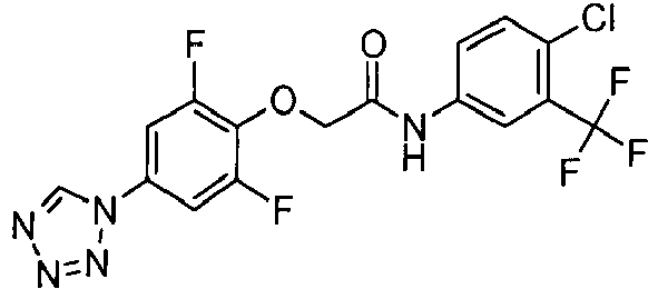 - VCUCBGLLJIKKAG-UHFFFAOYSA-N n-[4-chloro-3-(trifluoromethyl)phenyl]-2-[3-(5-methyltetrazol-1-yl)phenoxy]acetamide Chemical compound CC1=NN=NN1C1=CC=CC(OCC(=O)NC=2C=C(C(Cl)=CC=2)C(F)(F)F)=C1 VCUCBGLLJIKKAG-UHFFFAOYSA-N 0.000 claims description 6