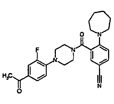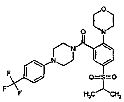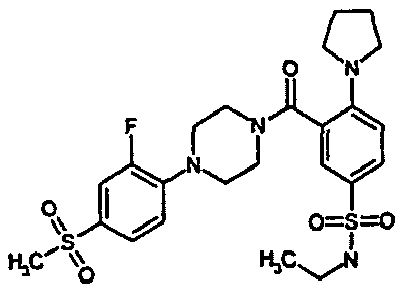 - LBSXMXJLVWQTFD-UHFFFAOYSA-N CCS(c(cc1)cc(C(N2CCC(Cc(cc3F)ccc3C#N)CC2)=O)c1N1CCOCC1)(=O)=O Chemical compound CCS(c(cc1)cc(C(N2CCC(Cc(cc3F)ccc3C#N)CC2)=O)c1N1CCOCC1)(=O)=O LBSXMXJLVWQTFD-UHFFFAOYSA-N 0.000 description 1