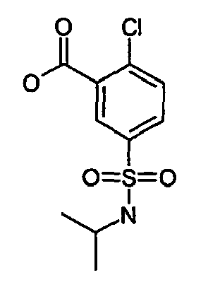 - HWAKXAIIYRBOCH-UHFFFAOYSA-N CCNS(c(cc1)cc(C(O)=O)c1Cl)(=O)=O Chemical compound CCNS(c(cc1)cc(C(O)=O)c1Cl)(=O)=O HWAKXAIIYRBOCH-UHFFFAOYSA-N 0.000 description 1