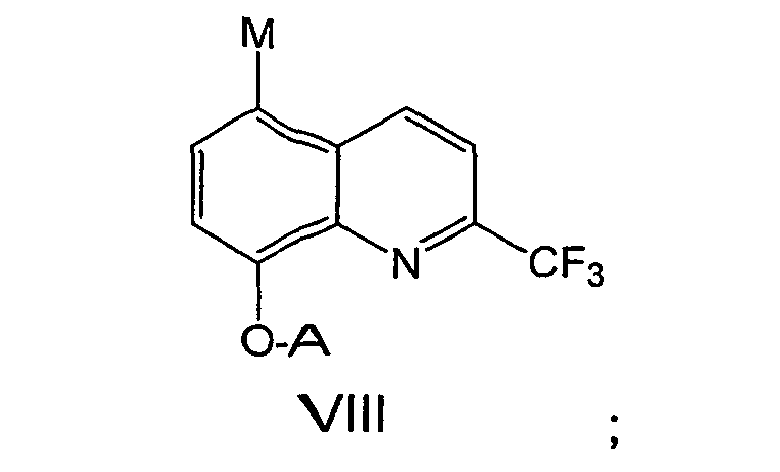 - This invention provides a process to prepare such quinoline compounds carrying a trifluoromethyl group at the 2-position and having a substituent at the 8-position of the quinoline moiety.