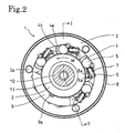 - Parts of the cover 8 are bent to form support parts 8a underlying the spring caps 7, i.e., extending on the radially inner side of the spring caps 7.