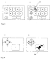 - Fig.3 an example for a black jack game application is shown. While Fig.3(i) depicts the screen and all positions a,...,1 of different buttons visible or not visible on the screen, Fig.3(ii) depicts the navigation neighbourhood relationship between the buttons. Three buttons 1.0, 2.0, 3.0 on positions a,b,c are initially visible and selectable. The other button positions d,...,1 are used for graphic button objects that are flagged as masked buttons, and that are only displayed when according commands are executed from the button commands, which are defined for the visible and selectable buttons 1.0,2.0,3.0. These three buttons serve as "Deal out a card" for button 1.0, "Stop dealing” for button 2.0 and “Start a new game” for button 3.0.