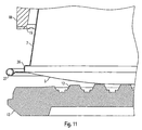 - Fig. 2 shows a state in which such a capsule has been placed on a capsule holder 13, the foil member 5 resting on the relief element 12 side of the capsule holder 13 and the cup-like base body 4 of the capsule 1 being already partly surrounded by the circumferential wall 25 of an enclosing member 9 of the beverage production device.