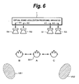 - the main operation of the virtual sound localization processing apparatus 6 is substantially the same as that of the virtual sound localization processing apparatus 1. That is, since the acoustic signals including a plurality of auxiliary signals are generated as sounds from the speakers 151 to 154, the sound images VS1 and VS2 are localized. Since the band of each auxiliary signal has been limited to the low frequency side as mentioned above, even if the listener 301 is moved to the position shown at B or C, the deviation of the localization feeling of the sound image which is sensed by the listener is reduced, so that the listener can obtain the stereophonic acoustic effect.