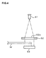 - a later-described controller Based on the change of the application region sensed by the sensor 63 when the wafer W is rotated via the stage 34 or 35, a later-described controller detects the center position of the wafer W, the misalignment amount between the center position of the wafer W and the center of the stage 34 or 35, and the orientation of the notch N. After the stage 34 or 35 rotates to direct the notch N in a predetermined direction, for example, the stage 34 or 35 moves along the guide rail 32 based on the center position. Exposure beams can then be applied to an application region 40 of the wafer W while the stage 34 or 35 is rotating as described later to expose, for example, the edge of the wafer W in a uniform width.