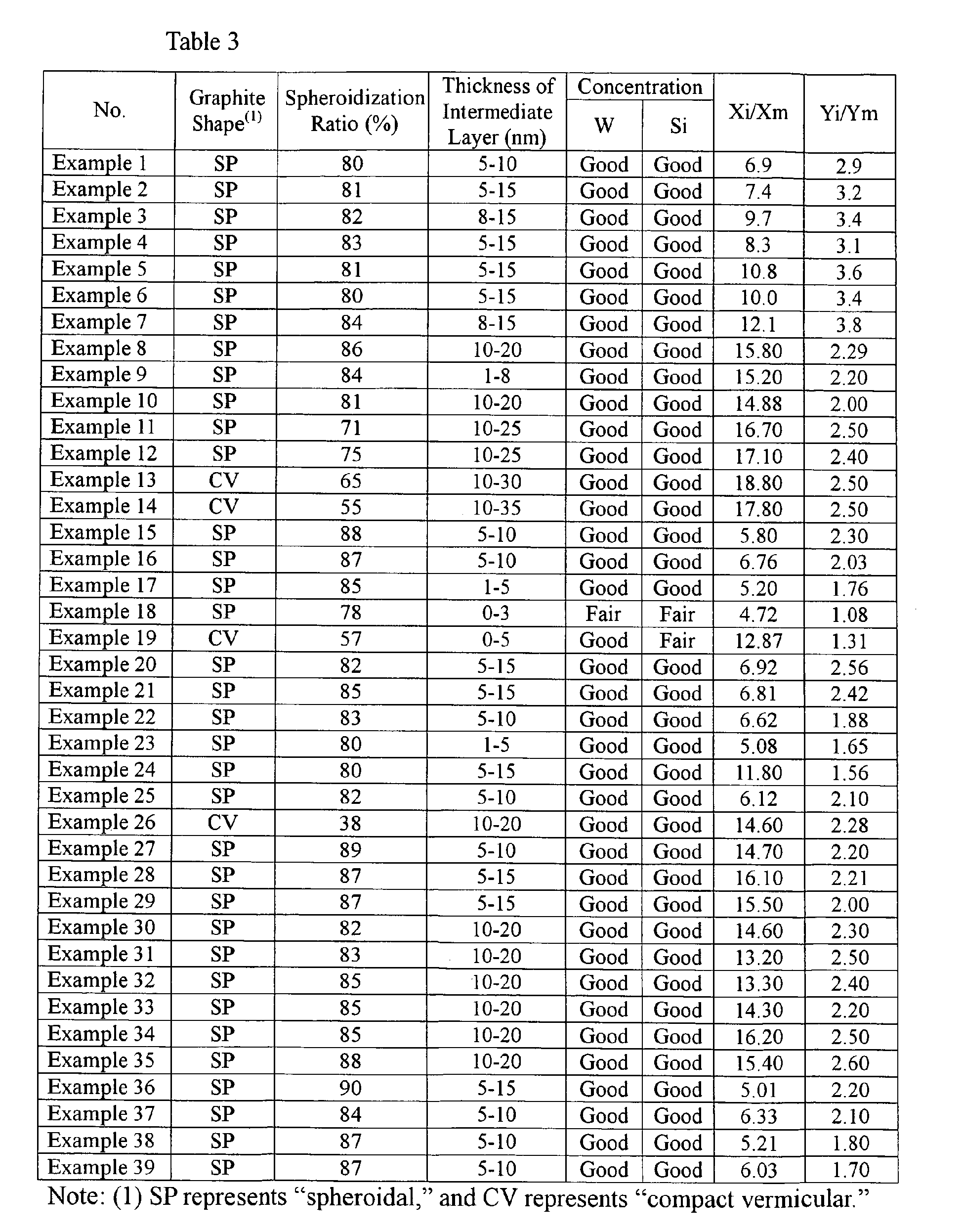 - the intermediate layers act as protective layers (barriers) to suppress the intrusion of oxidizing gases into the graphite from outside and the diffusion of C from the graphite particles, thereby preventing the oxidation of the graphite particles and their surrounding matrix regions, and thus improving the oxidation resistance and thermal crack resistance of the heat-resistant cast iron.