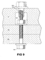 - Figure 9 is a cross-sectional view of a bolt configuration suitable for affixing a shaft-restraining member to a main bearing housing.