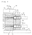 - the drawing shows an example of a configuration in which two sets of mold structure units each constituted of a first mold 111 and a second mold 112 are arranged as stacked in the vertical direction.