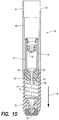 - Syringe 10 is, preferably, an automatic injection apparatus that extends a hypodermic needle from within the assembly, injects a single, pre-measured dose of medicine from cartridge 14 into a user, and automatically retracts the hypodermic needle into the assembly after the injection is completed.