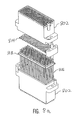 - the electromagnetic signal propagates in the region 108 surrounding the surfaces of the spring pins, (multiple spring pins not shown) and encounters dielectric caps 102 at the module ends along with any dielectric shims 116 within the signal module.