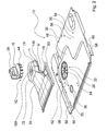 - the ventilation duct 18 extends in the manner of a fan-like manner toward the substantially circular cover 72 in the direction of the outlet opening 68.