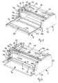 - An ihrem jeweiligen anderen Ende sind die Seitenschienen 6c, 6d mit jeweils einer Schienenführung verbunden, welche sich entlang der Innenseite der seitlichen Platten 2a, 2b in horizontaler Richtung erstrecken. Hierdurch ist eine teleskopartige Bewegung des Schiebers bezüglich des Grundrahmens 2 in horizontaler Richtung zwischen einer äußeren und einer inneren Position möglich. Die in Fig. 1 gezeigte.Darstellung der Vorrichtung 1 entspricht dabei der äußeren Position, in welcher der Schieber 6 mit den Seitenschienen 6c, 6d im Wesentlichen vollständig außerhalb der Öffnung an der Vorderseite 5 angeordnet ist.
