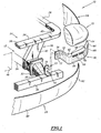 - Each flexible arm 20 comprises a flexible body 50 around a substantially vertical axis, the body 50 having an inner end 52 attached to the body elements 12 at the front of the front face 14, and an outer end 54 on which is fixed a front edge of the wing 16.
