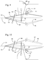 - the warp threads 44 and 46 are shown in solid lines in their essentially highest position, whereas those in their essentially lowest position are shown in dashed lines.