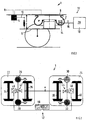 - sensors 52, 53, 54, 55 and 56, 58, 60, 62 deliver corresponding travel signals and pressure signals to the evaluation unit 18, which is integrated in a wheel slide protection control device 64 of a wheel slide protection device which blocks the wheel sets 34, 36, 38 and 40 should prevent.