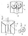 - the air flowing through the outer partial channels 12a ', 12a ", 12b' and 12b" is deflected by the helical curves and thereby obtain a twist which is still present at the outlet opening 4 and provides for a certain turbulence of the air and the respective through the inner sub-channels 11a and 11b fan out coming streams of air.