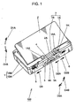- the user When a user conducts recording and/or reproduction for a disk medium in this disk unit, the user inserts a disk medium in the direction of an arrow D103 into the open lid body 101 of Fig. 36 . Then, the user closes the lid body 101 in the direction of an arrow D104 against the force of the opening spring 126 in the direction of the arrow D102.