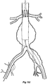- the aorta 10 has an aneurysm 20 which extends down into the common iliac artery 18 as far as the bifurcation 22 between the internal iliac artery 24 and the external iliac artery 26.
