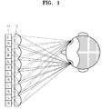 - EP 0 788 008 A1 describes the invention relating to a stereoscopic image display apparatus comprising a light source for emitting light from plural apertures, an optical element array composed of an array of optical elements having different optical functions in the horizontal and vertical directions, for giving directivity to the light emerging from the apertures, and a transmissive display device for displaying a stripe image, obtained by dividing each of a parallax image for the right eye and a parallax image for the left eye in the vertical direction to obtain right stripe pixels and left stripe pixels and arranging the right and left stripe pixels alternately in a predetermined order, wherein the plural apertures are provided corresponding to each of the optical elements constituting the optical element array, for each stripe pixel, and are adapted to cause the light, passing through the right or left stripe pixel, to reach a predetermined area.