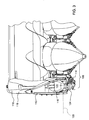 - Figure 6 illustrates the hinge 148 that supports right fender 110 when it is in its outwardly tilted position. Hinge 148 is better illustrated in the succeeding figure 7-8 , from different perspective views.