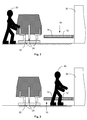 - the transport carriage 28 is then moved through the protective field in the transport direction 34 at the usual conveying speed.