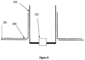 - infrastructure can comprise an optical source and a photo-detector which measures the signal emanating from a dye spot present on component 3 and/or the extent of absorption of light transmitted across an optical gap to thereby determine the absorption caused by the bioreactor fluid. Further embodiments of this insert will be discussed in connection with other figures illustrating the invention.