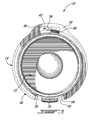 - the lip 26 includes an undercut 28 registered with the hinge 16 (see Figure 5 ), broader therefore, to ease pivoting the cap 14 as will be described furtherin.
