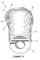 - the cap 14 includes a top portion 46, dimensioned to conform to the circular contour of the wall 18, and a peripheral skirt 48 extending from the disk portion 46.