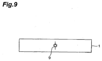 - FIG. 8 the object 1 is irradiated with laser light L while the converging point P is located within the object 1 under a condition where multiphoton absorption occurs, so as to form a crack region 9 therewithin along a line to cut.