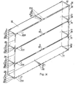 - a small billboard W or a notice board being projected for illumination may be provided at one end of the lamp rack unit 1 and several latches 13 for the holes are provided at the other terminal.