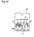 - the lower row is composed of a greater number of terminals than the upper row, and the length of the lower row in the direction orthogonal to the insertion direction R is greater than the length of the upper row, and consequently of all the terminals 210 -290 contained in the upper and lower rows, the first sensor drive terminal 250 and the second sensor drive terminal 290 are situated at the outermost positions viewed in the direction orthogonal to the insertion direction R.