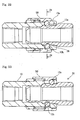 - the locking recess has a first portion having a depth at which the plug-locking element (12b) as received therein does not block movement of the sleeve (50) urged by the spring member (15), and a second portion (36) provided closer to the rear end of the plug than the first portion.